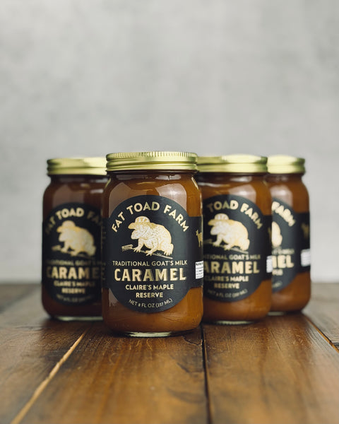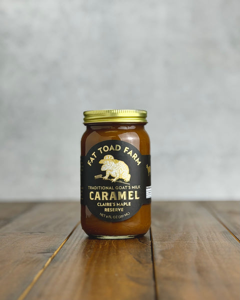 When Fat Toad Farm joined the Butterfly Bakery of Vermont family, owner Claire Georges began creating an all-maple version of our classic goat’s milk caramel. For years, this recipe was made only for Claire and her family, but it was simply too good to keep secret. Claire’s Maple Reserve Caramel is sweetened entirely with Vermont maple sugar for a rich, deep flavor that captures the taste of Vermont. Enjoy it with aged cheese, dark coffee, warm apple crisp, or the way Claire does - straight from the spoon.
